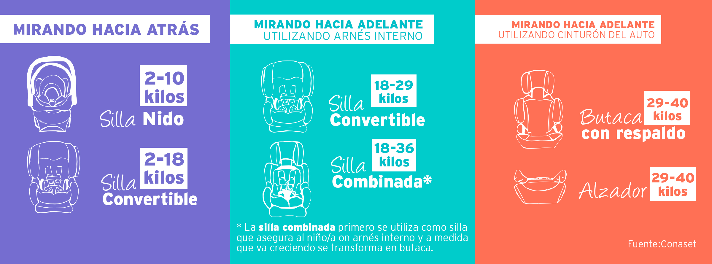 Los estudios de la entidad encargada de la seguridad del tránsito, muestran que solamente la mitad de los niños chilenos son transportados de manera segura ya que aún es frecuente que viajen sueltos en el auto (34%), en brazos (11%) y con el cinturón de seguridad (6%). Las autoridades advirtieron que solamente una silla de auto adecuada a la edad y tamaño del niño, que esté bien instalada, puede evitar o minimizar las consecuencias de un accidente de tránsito.