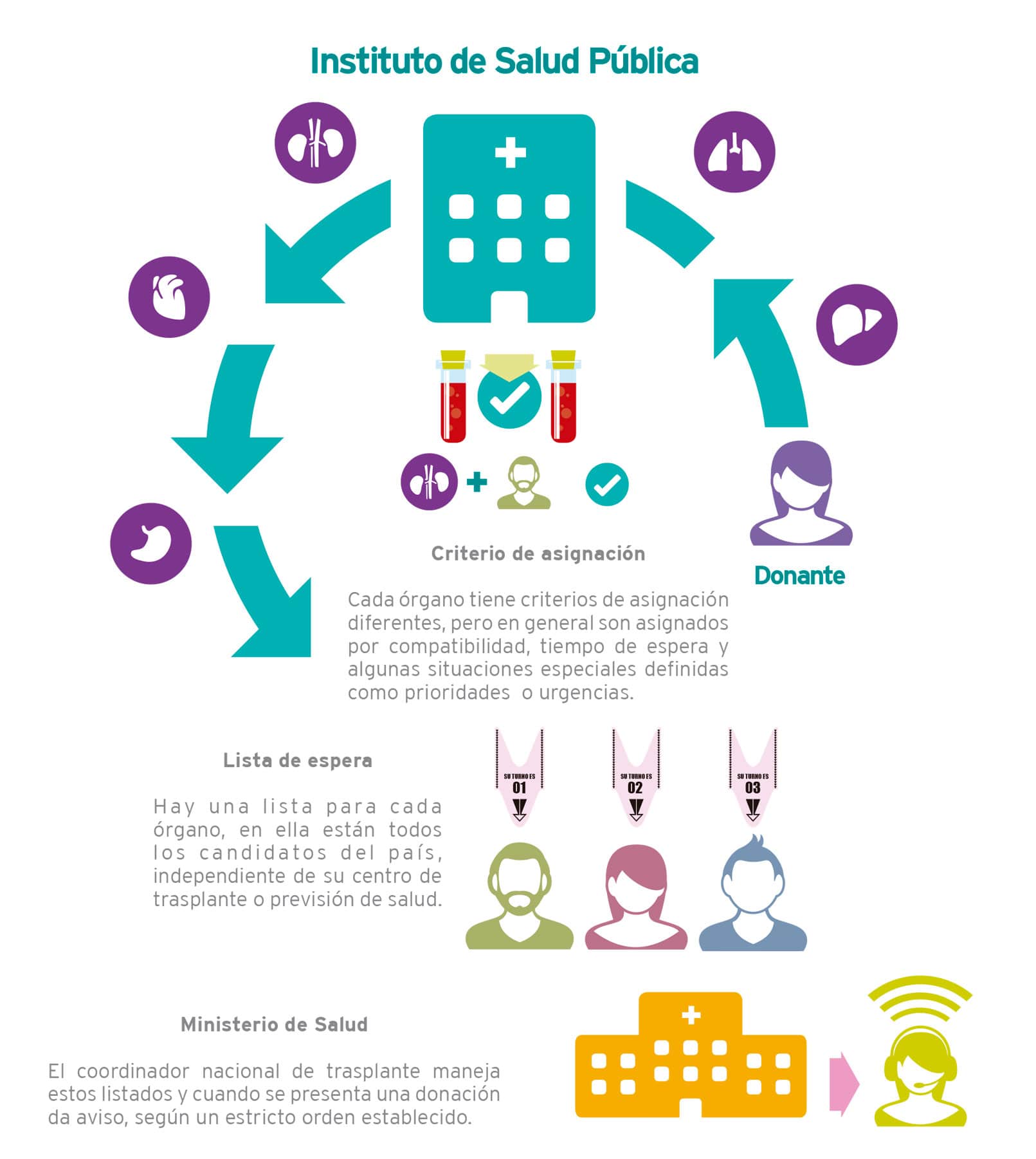 los órganos y gestionar las listas de espera. Todo esto de acuerdo a la normativa chilena vigente y a los requerimientos técnicos internacionalmente establecidos.